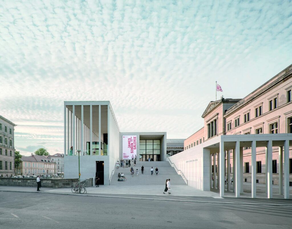 Ob das Bundeskanzleramt, die Akademie der Künste oder die James-Simon-Galerie, sie alle wurden bewusst mit einem Material gebaut, das Unregelmäßigkeiten, Spuren des Entstehungsprozesses und feine Unterschiede in Farbe und Struktur zeigt.