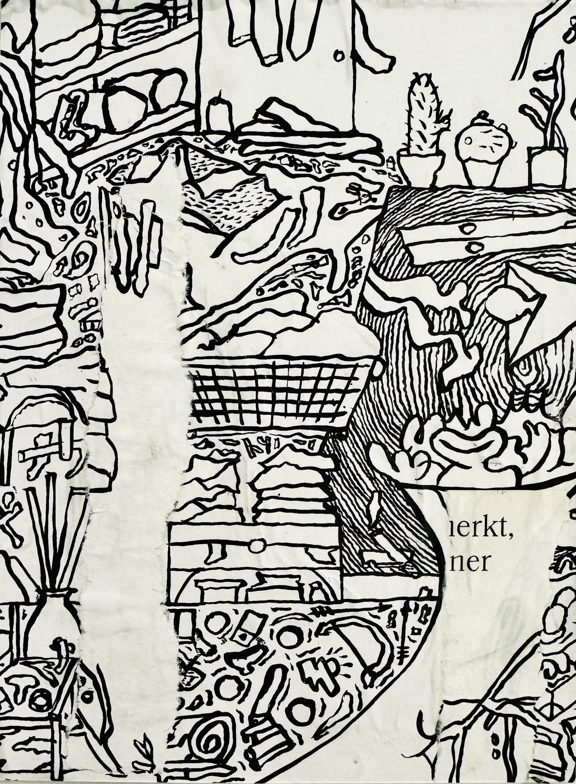 Ich habe die Schnipsel-Reste aus dem Papiermüll gefischt und eigene ‚Collagen‘ erstellt- als Antwort auf den Kurs.